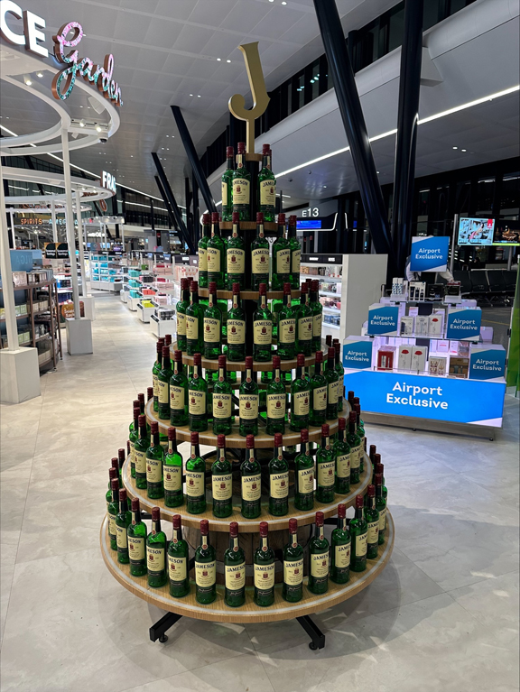 In MVD Arrivals (November 1-December 31), the eye-catching holiday tree greets passengers arriving in the terminal. Promoters sampling Jameson Black Barrel have already received great feedback; and travelers are intrigued by Triple Triple as a travel retail exclusive, showing strong brand awareness.