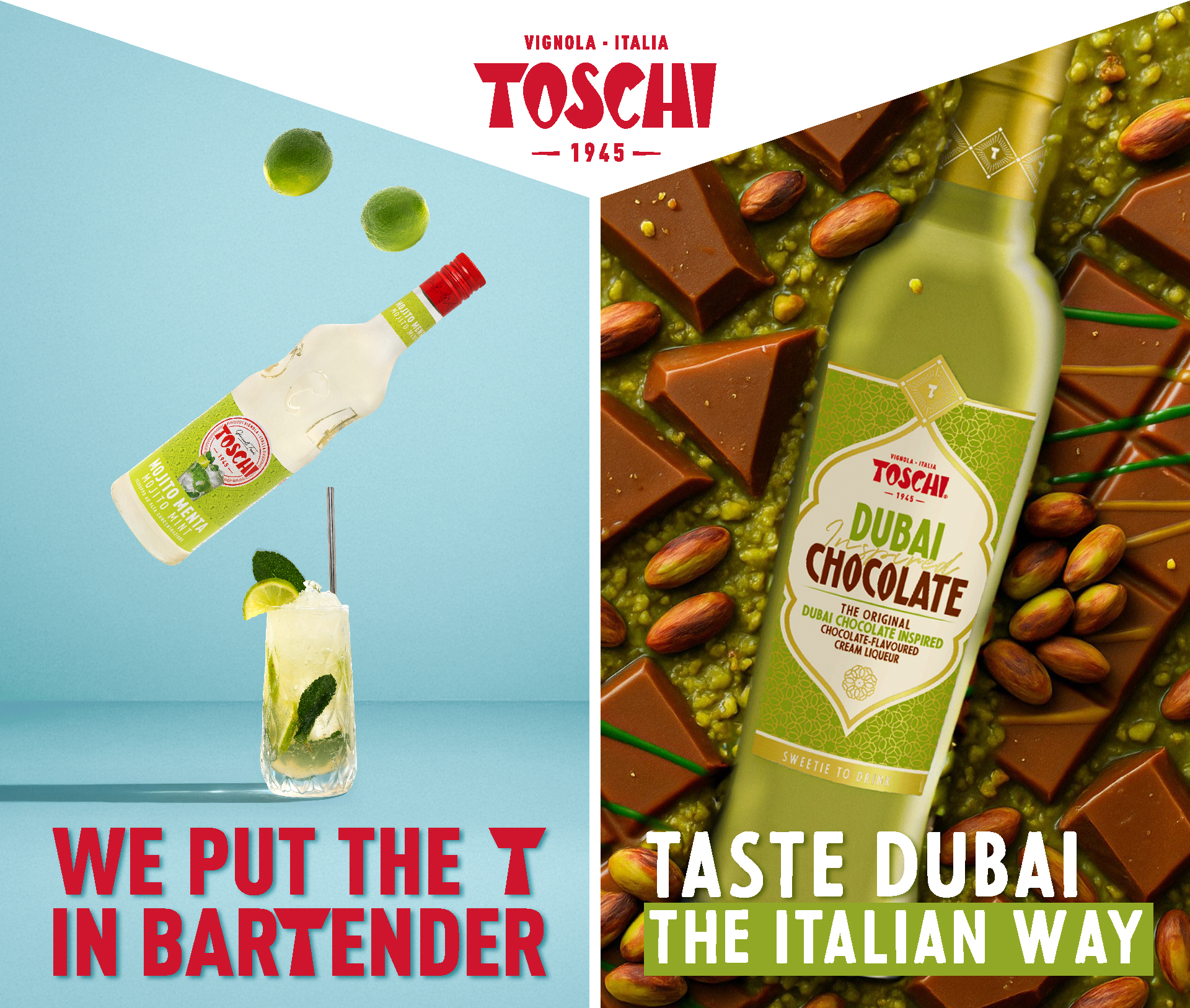 Founded in 1945 in Vignola by brothers Giancarlo and Lanfranco Toschi, the company originated with cherries preserved in spirits. Today, Toschi exports to more than 80 countries a product range spanning from the iconic candied Amarena cherries in syrup to toppings, from syrups to traditional liqueurs such as Nocino di Modena, Lemoncello and Fragolì, as well as the Zero+ line with no added sugar.